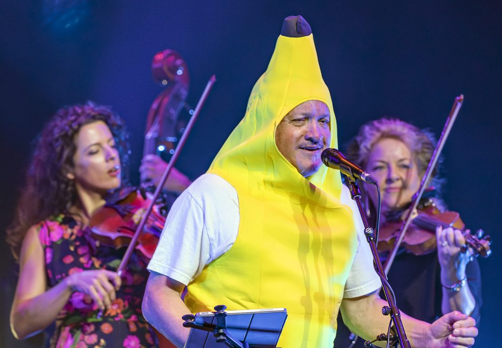Prominent violinist, actor, singer and composer George Washingmachine is a regular on the Golden Fiddle stage and this year he once again wowed the audience with reimagined childhood classics from his Bonza Vista Social Club album — Hey Diddle Diddle, Hokey Pokey and Humpty Dumpty. His fiddle accompaniament came from Liz Young (left) and New Zealand’s Marian Burns. All three performers are former winners of Golden Fiddle Awards.