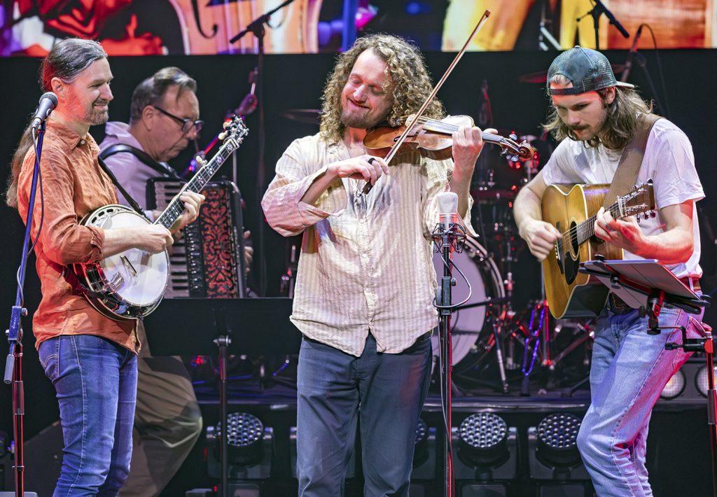 The grand finale to every Golden Fiddle Show is always a show-stopper when all the show’s performers fill the stage and play rousing music. This year was no exception with a spirited rendition of ‘Faded Love’, a Western swing song written by Bob Wills, with his father John and brother, Billy Jack. The tune is considered to be a shining example of American Western swing fiddle. Overlooking the stage from the big projection screen on which a movie of the Golden Fiddle history plays throughout the performance is music director, multi-instrumentalist and multi-award winner Andrew Clermont, whose Tamworth-based Supper Club is celebrating its 28th anniversary this year.